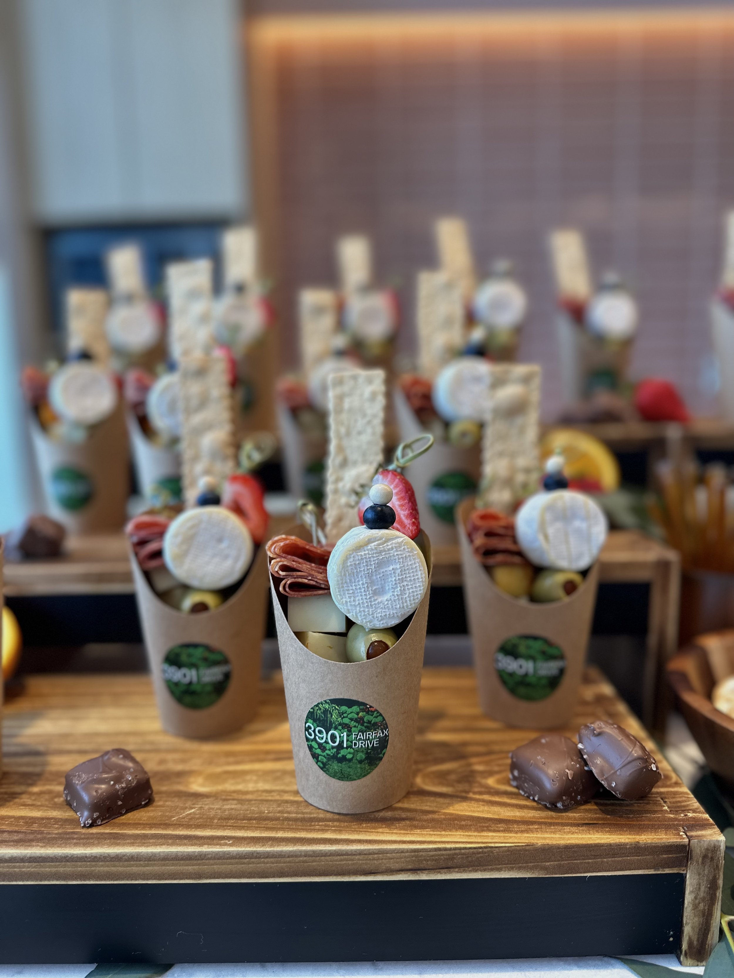 Our single-serve charcuterie cups are the perfect handheld snack for all your guests!